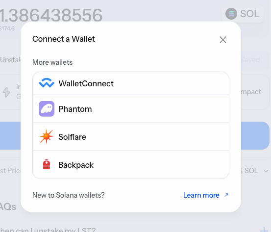 Choose the LST you want to unstake from. Enter the amount. Select either instant or delayed unstaking. Review the quote and confirm the transaction.